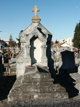 Donne une perspective monumentale à cette allée qui est une des plus anciennes du cimetière. Bon exemple d'architecture et de sculpture funéraire du XIX siécle.