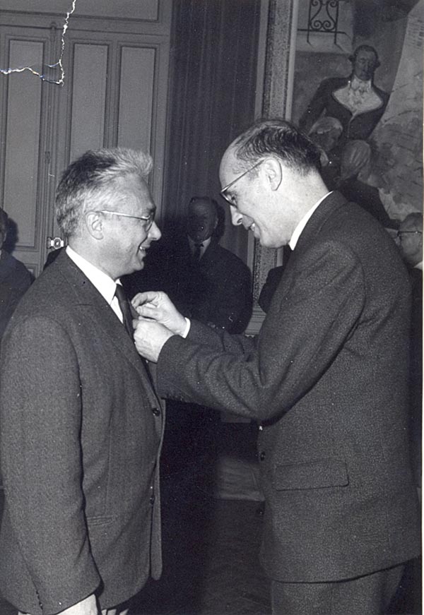 Mr Rouzil Pierre recevant le Mérite national des mains des mains du Docteur Carrére (Octobre 1964)