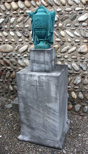Un voile de deuil vient recouvrir le sommet de l'amphore,